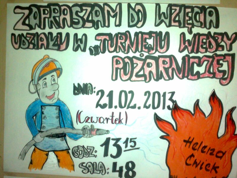 Dnia 21 lutego 2013r. odbyły się szkolne eliminacje Turnieju Wiedzy Pożarniczej pt. „Młodzież Zapobiega Pożarom”