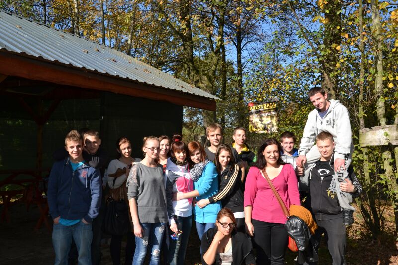 Główną atrakcją dnia była zabawa w paintballa. Klasa podzieliła się na dwie grupy, które rywalizowały ze sobą na polu „bitwy”.