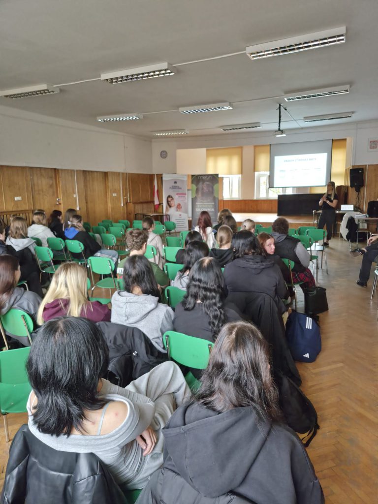 Tego dnia odbyło się również spotkanie ze specjalistami – psychologiem i pedagogiem – poświęcone przeciwdziałaniu przemocy rówieśniczej, które uświadomiło uczniom, jak ważne jest reagowanie na niepożądane zachowania i wzajemne wsparcie w środowisku szkolnym.