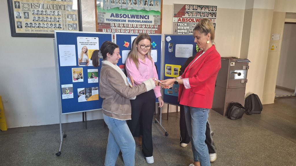 Odbyła się także prelekcja dotycząca cyberbezpieczeństwa, prowadzona przez specjalistę z Komendy Powiatowej Policji w Nysie. Uczniowie z klasy 3F dowiedzieli się, jak chronić swoje dane oraz jak bezpiecznie poruszać się w sieci.
