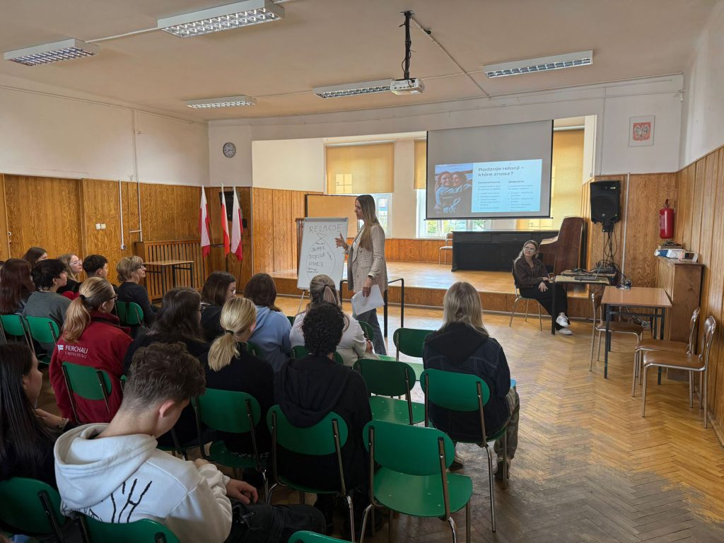 W środę uczniowie klas 3G, 3F oraz 4TF uczestniczyli w warsztatach pt: „Siła relecji w erze samotności” poprowadzonych przez p. Katarzynę Grygorowicz- szkolnego doradcę zawodowego. Spotkanie miało na celu uświadomienie uczniom znaczenia budowania i pielęgnowania relacji międzyludzkich, oraz rozwijanie umiejętności komunikacji opartej na empatii, zaufaniu i wzajemnym szacunku,